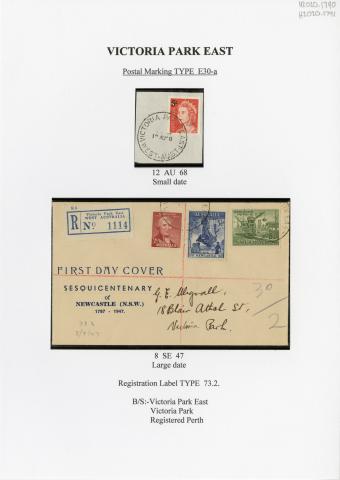 Registration Label, Victoria Park East (with E30-a type postmark), 1947
