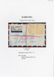 Registration Label, Karratha (with G31-a type postmark), 1973