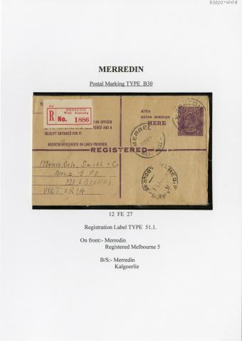 Registration Label, Merredin (with B30 type postmark), 1927