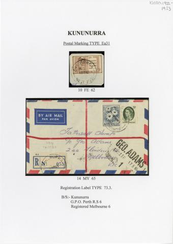Postmark from Kununurra, black ink, circular, (Ea31 type), dated 10 February 1962.