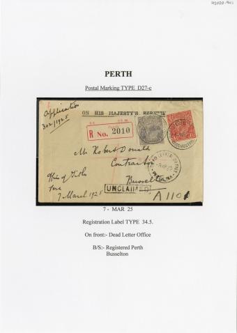 Registration Label, Perth (with D27-c type postmark), 1925