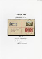 Also attached: Australian Antarctic Territory (J Mason) 7c; Australian Antarctic Territory (J Mason) 1c postage stamp(s); Black ink postmark from Maida Vale East (F31 type).