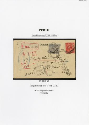 Registration Label, Perth (with d27-B type postmark), 1925