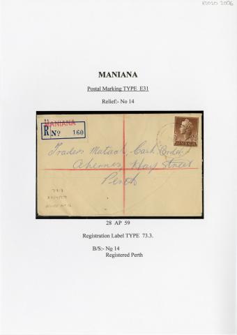 Registration Label, Maniana (with E31 type postmark), 1959