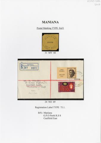 Registration Label, Maniana (with Ea31 type postmark), 1969
