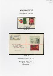 Also attached: Christmas 1969 25c; Albert Namatjira 5c Blackish Brown on Pale Buff (booklet pane '1902-1959 Artist') postage stamp(s); Black ink postmark from Maniana (Ea31 type).