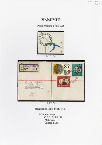 Registration Label, Manjimup (with A26 type postmark), 1970
