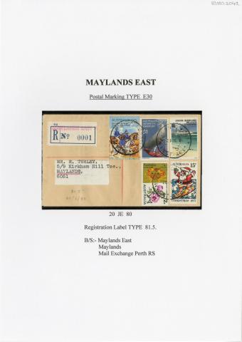 Registration Label, Maylands East (with E30 type postmark), 1980