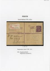 Also attached: King George V 4½d Purple postage stamp(s); Black ink postmark from Registered Perth (A29-a type).