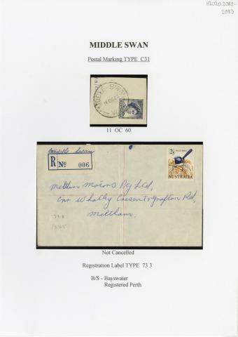 Registration Label, Middle Swan (with (not cancelled) type postmark), 1965