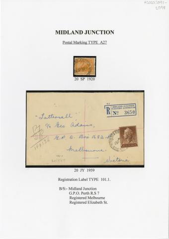 Postmark from Midland Junction, black ink, circular, (A27 type), dated 20 September 1920.