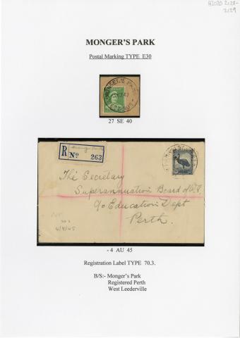 Registration Label, Monger's Park (with E30 type postmark), 1945