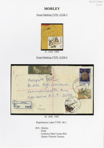 Postmark from Morley, black ink, circular, (G32R-3 type), dated 21 January 1984.