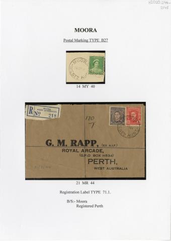 Postmark from Moora, black ink, circular, (B27 type), dated 14 May 1940.