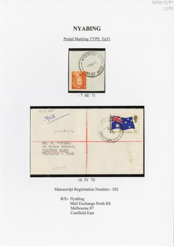 Registration Label, Nyabing (with Ea31 type postmark), 1970
