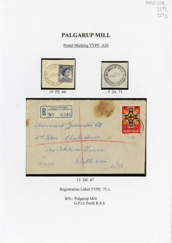 Postmark from Palgarup Mill, black ink, circular, (A26 type), dated 19 February 1966.