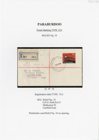 Registration Label, Paraburdoo (with E31 type postmark), 1970