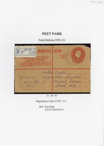 Registration Label, Peet Park (with F31 type postmark), 1965