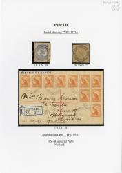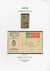 Also attached: King George VI 1s 4d Magenta; Kangaroo ½d Yellow Orange postage stamp(s); Black ink postmark from Registered Perth (D27-c type).