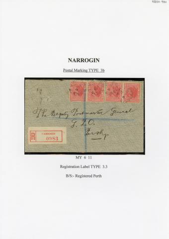 Registration Label, Narrogin (with 3b type postmark), 1911