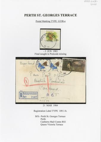 Registration Label, Perth St George's Terrace (with G33R-e type postmark), 1984