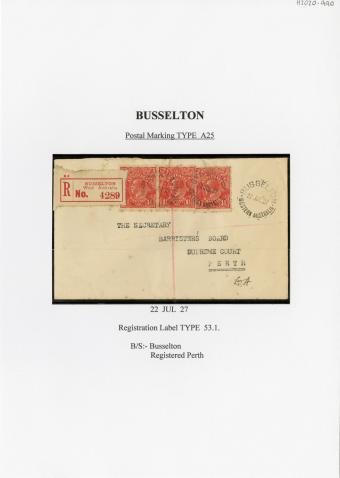 Also attached: King George V 1½d Red postage stamp(s); Black ink postmark from Busselton (A25 type).