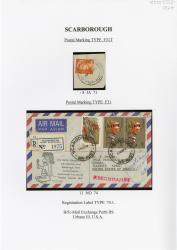 Also attached: Australian Antarctic Territory (J Mason) 20c; Australian Antarctic Territory (J Mason) 4c postage stamp(s); Black ink postmark from Scarborough (F31 type).