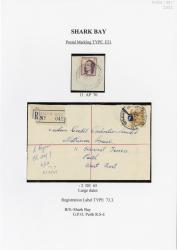 Also attached: Lyrebird 1s Bronze Green; Christmas 1957 4d Purple; Queen Elizabeth II 3d Deep Dull Green postage stamp(s); Black ink postmark from Registered Perth (unidentified type).