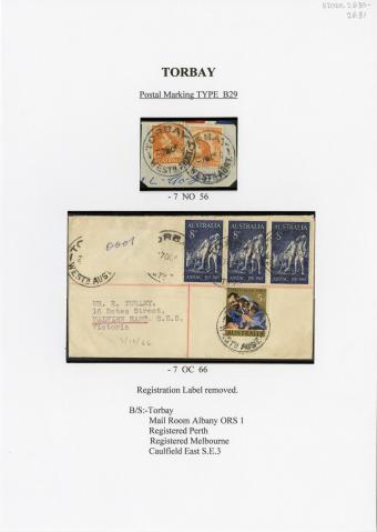 Also attached: ANZAC 1915-1965 8d Deep Blue; Christmas 1965 5d postage stamp(s); Black ink postmark from Torbay (B29 type).