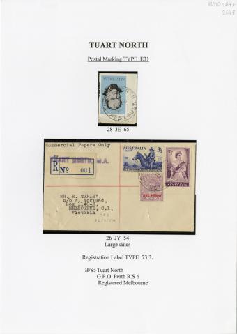 Registration Label, Tuart North (with E31 type postmark), 1954