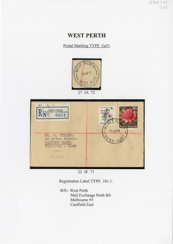 Postmark from West Perth, black ink, circular, (Ea31 type), dated 27 January 1972.