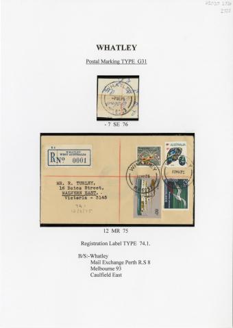 Registration Label, Whatley (with G31 type postmark), 1975