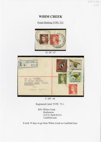 Registration Label, Whim Creek (with F31 type postmark), 1966