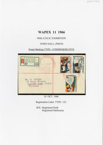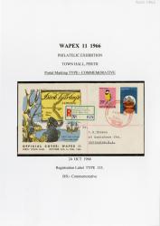 Registration Label, WAPEX II Philatelic Exhibition Perth (with illustrated commemorative type postmark), 1966