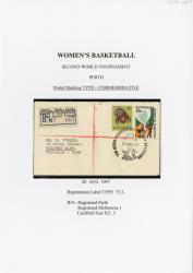 Registration Label, Women's Basketball 2nd World Tournament Perth (with illustrated commemorative type postmark), 1967