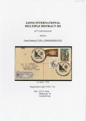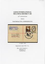 Also attached: Australian Antarctic Territory (J Mason) 15c; Hermit Crab 9c postage stamp(s); Black ink postmark from WOMEN'S BASKETBALL SECOND WORLD TOURNAMENT PERTH (illustrated commemorative type).