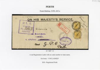 Registration Label, Perth (with D27-c type postmark), 1912