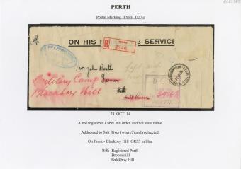 Registration Label, Perth (with D27-a type postmark), 1914