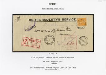 Registration Label, Perth (with D27-c type postmark), 1916