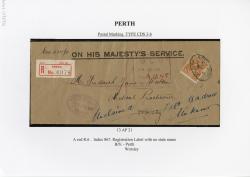 Registration Label, Perth (with ODS 3b type postmark), 1918