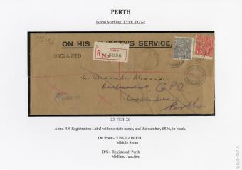 Registration Label, Perth (with D27-c type postmark), 1926