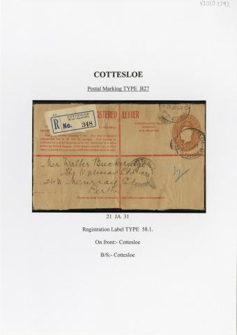 Registration Label, Cottesloe (with B27 type postmark), 1931