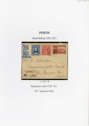 Registration Label, Perth (with D27(?) type postmark), 1930