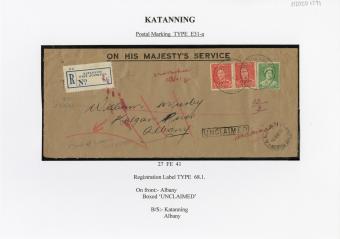 Registration Label, Katanning (with E31-a type postmark), 1941