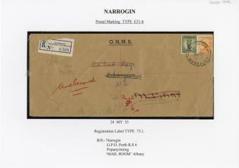 Registration Label, Narrogin (with E31-b type postmark), 1955
