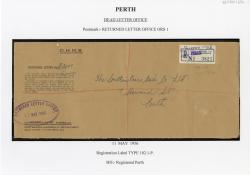 Registration Label, Perth Dead Letter Office (with D27-a type postmark), 1940