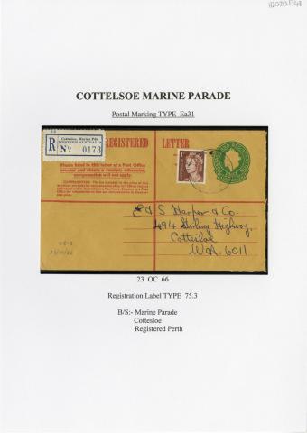 Registration Label, Cottesloe Marine Parade (with Ea31 type postmark), 1966