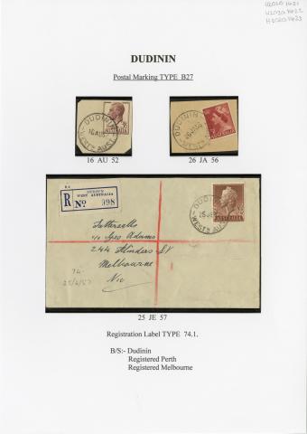 Registration Label, Dudinin (with B27 type postmark), 1957