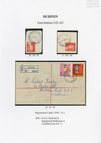 Postmark from Dudinin, black ink, circular, (B27 type), dated 20 April 1966.