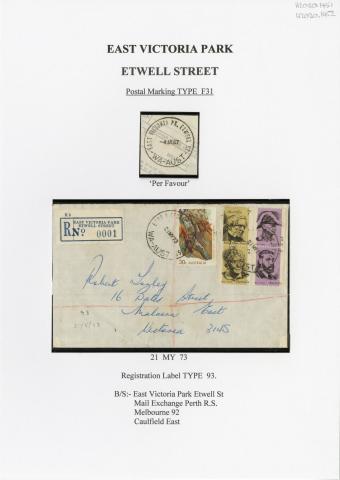 Postmark, East Victoria Park Etwell Street (F31 type), Per favour (no date)